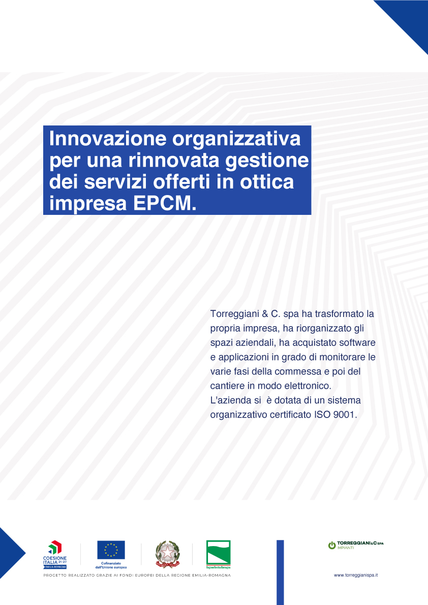 La Torreggiani Servizi S.r.L., azienda del gruppo Torreggiani, a decorrere dal 21 Marzo 2018 è riconosciuta come conforme ai requisiti della norma UNI 11352:2014 per l’erogazione dei servizi energetici: progettazione, installazione, gestione e manutenzione degli impianti.